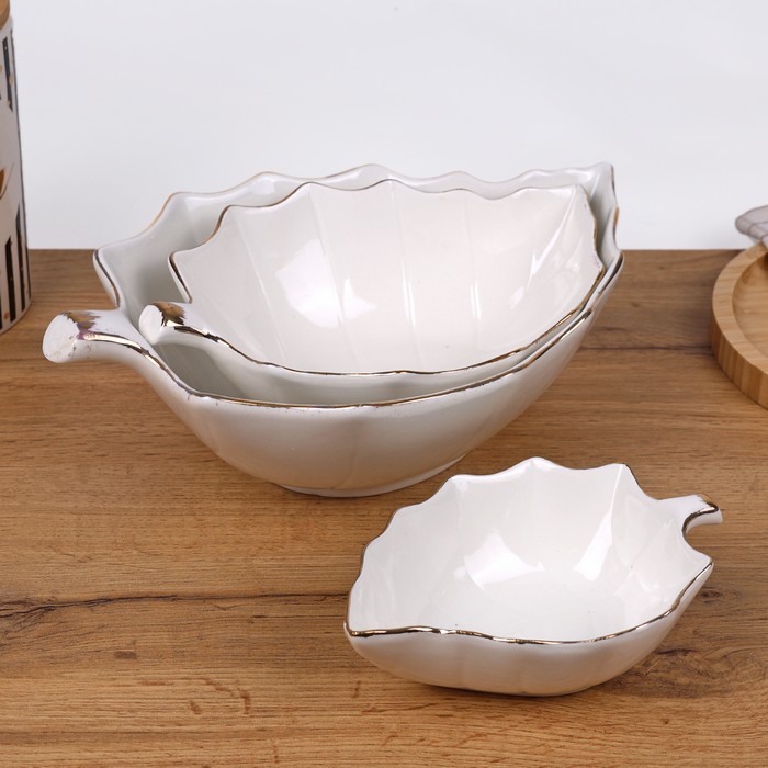 Plates set, GS, Ceramics, 3 pieces, White, Leaf