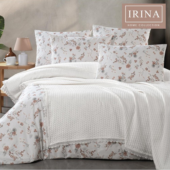 Bed linen, IRINA HOME, 4 pcs, 240x260cm, 220x240cm, 50x70cm, Cotton, Coffee, Floral, Turkey