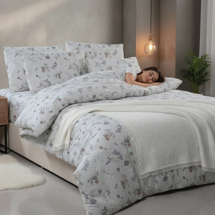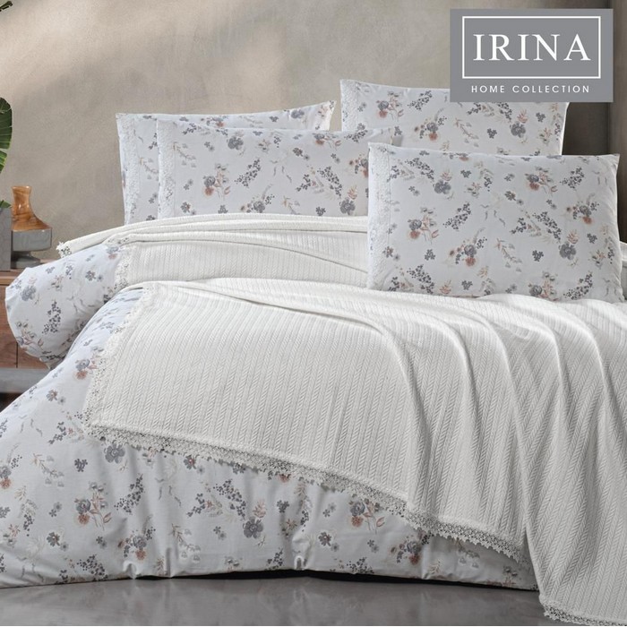 Bed linen, IRINA HOME, 4 pcs, 240x260cm, 220x240cm, 50x70cm, Cotton, Gray, Floral, Turkey