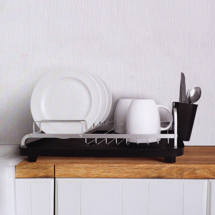 Dish drying rack, GS, Metal/Plastic, Black/Silver, 39x28x15.55 cm
