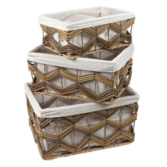 Basket set, GS, 3 pieces, Braided wire, 29x38x20,5 cm, 35x25x17 cm, 21x31x12 cm