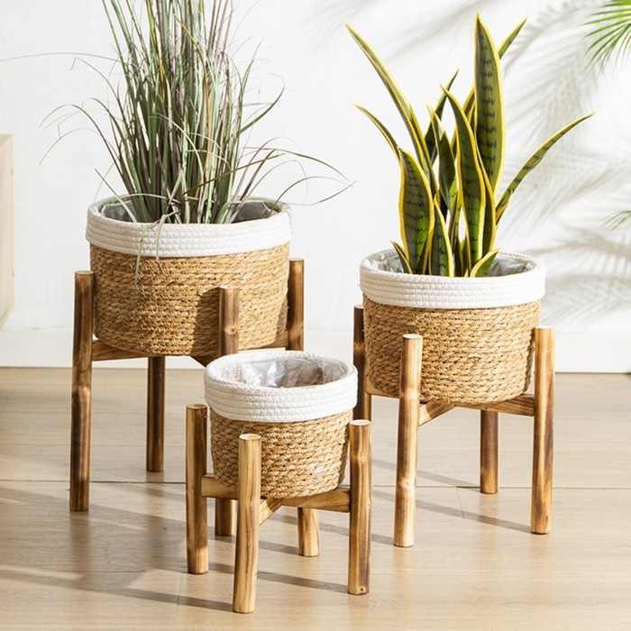 Decorative flower pot set, GS, 3 pcs, With stand, Paper/Textile, 31x31x38 cm, 26x26x34 cm, 23x23x27cm