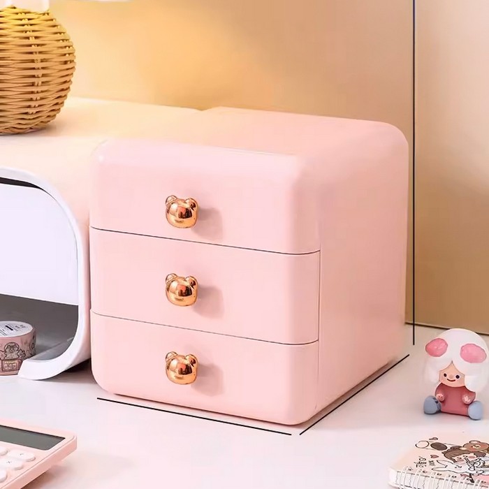 Storage organizer, GS, 3 drawers, Plastic, 17x16x17cm, Pink