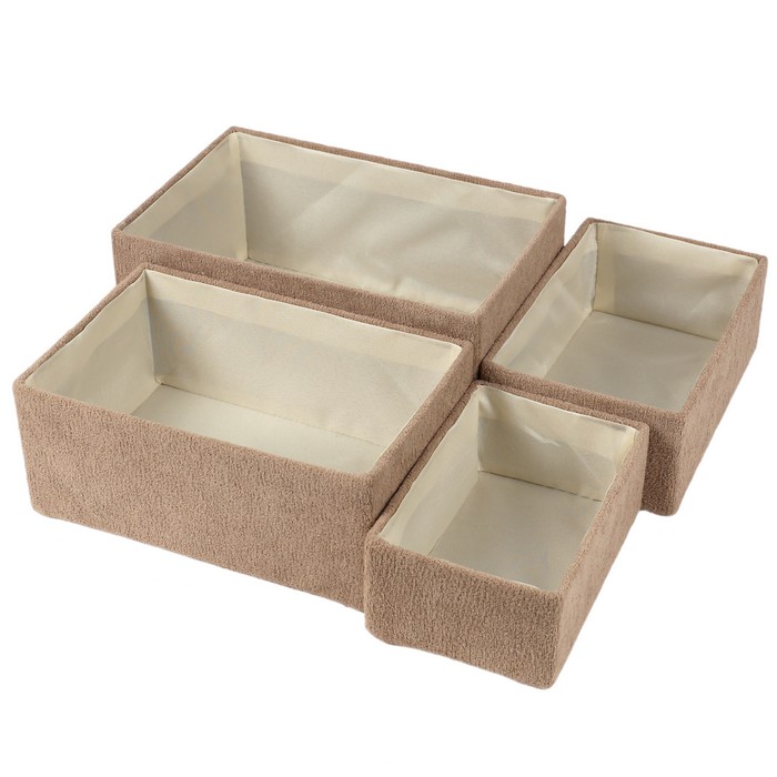 Basket set, GS, 4 pcs, Velveteen, 18x12x7 cm, 22x14x8 cm, 26x16x10 cm, 28x18x12cm, Cappucino