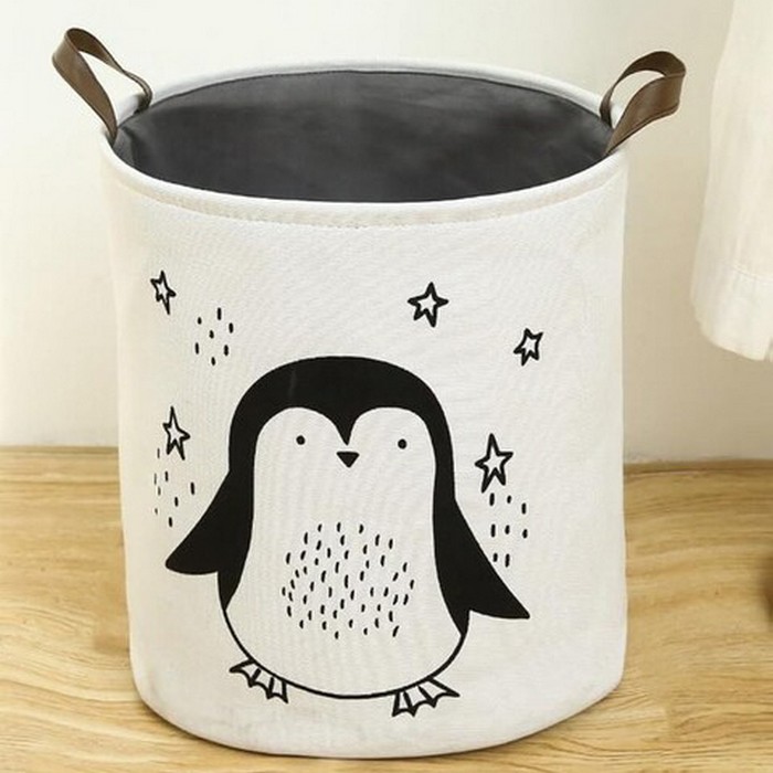 Basket, GS, Textile, 35x40cm, White/Gray, With print, For Kids