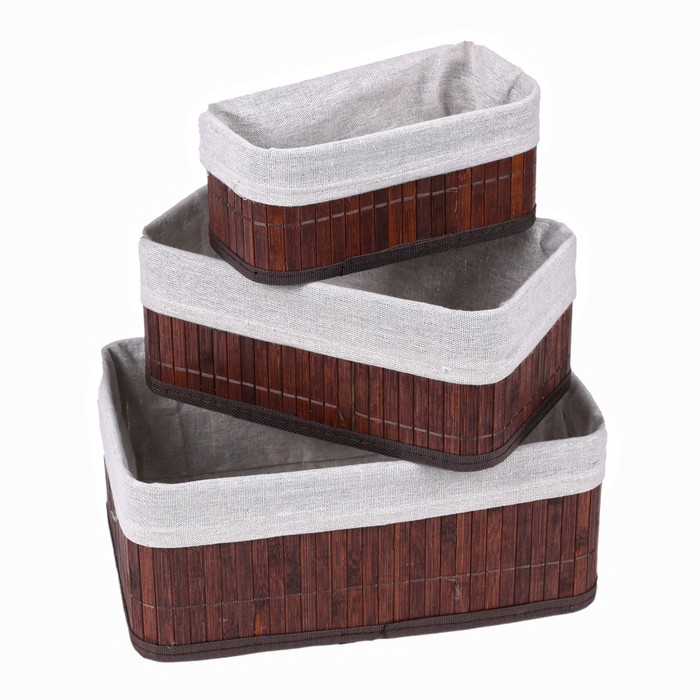 Basket set, GS, 3 pieces, Bamboo, Textile, 29x20x12 cm, 24x15x10 cm, 19x10x8 cm