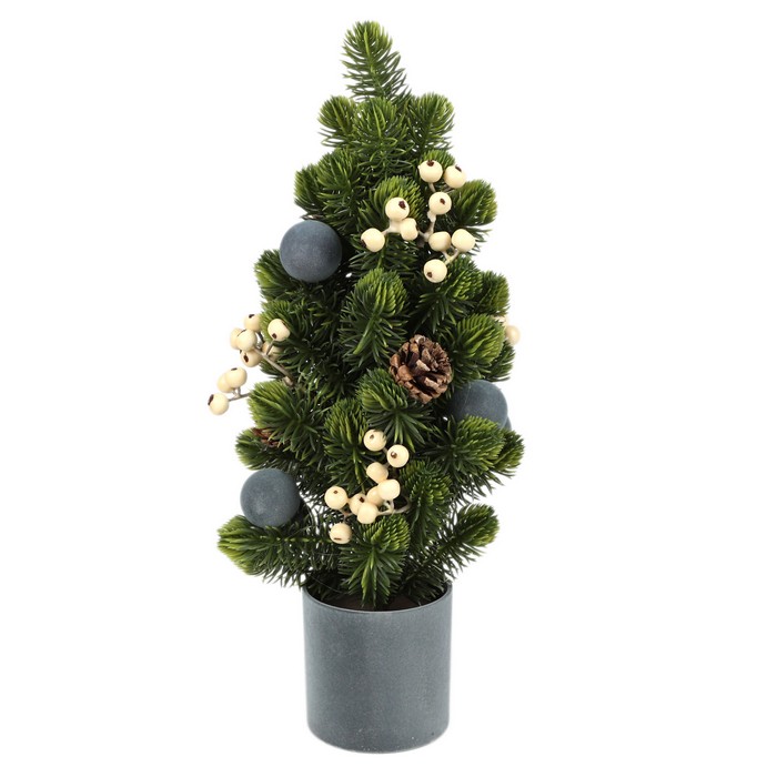 Decorative christmas tree, GLOBAL CHRISTMAS, 48 cm, PE, Green, Cones/Berries/Balls