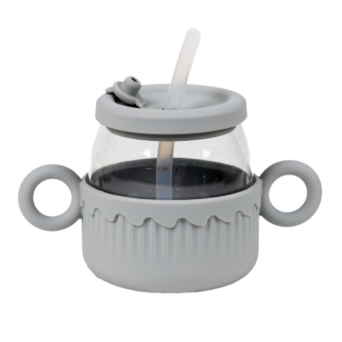 Water bottle with straw, OLE OLA, Silicone/Glass, Various Colors, With lid, With straw, For Kids
