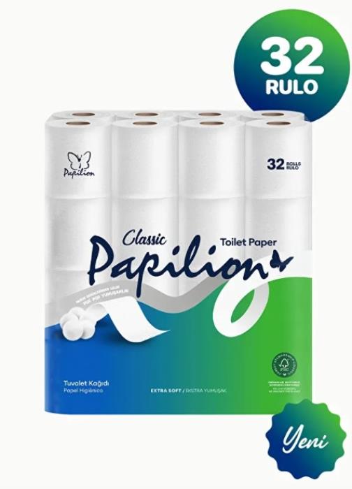 Toilet paper, PAPILION, 32 rolls, 2 layers, 115 file, Classic, Soft, 117x93 mm, 13 m