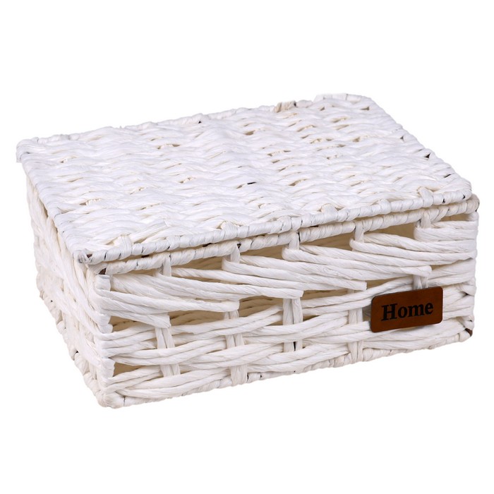 Storage basket, GS, Braided wire, 28x20x13 cm, With lid, Rectangle, White