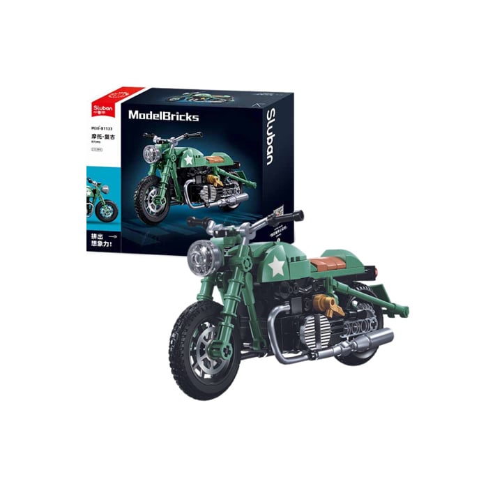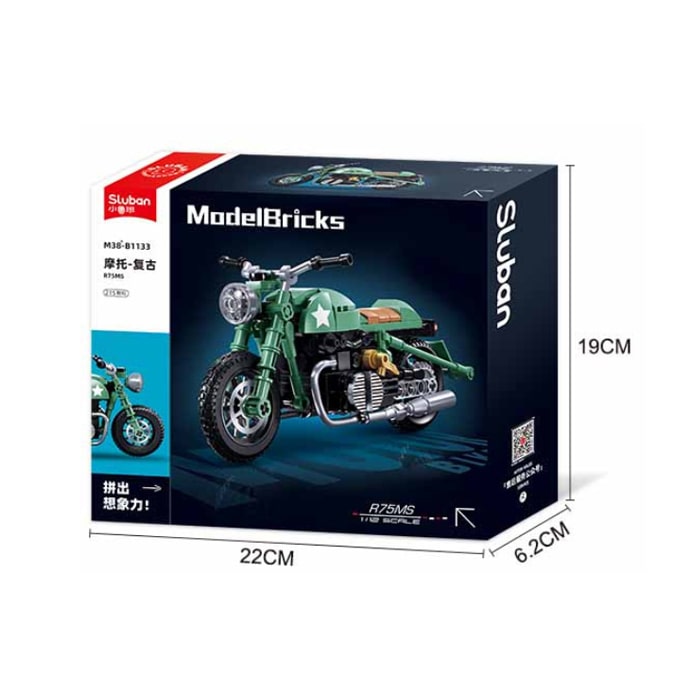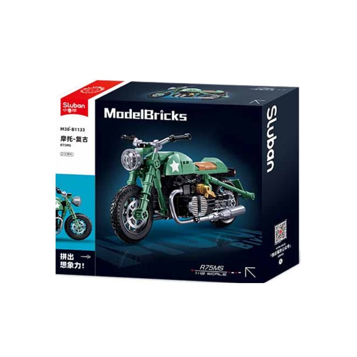 The Sluban Model Bricks "R75MS Motorcycle" construction set allows you to assemble a realistic model of a motorcycle. The plastic parts are of high quality, all design elements fit together reliably and can be easily disassembled.
