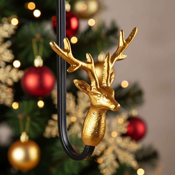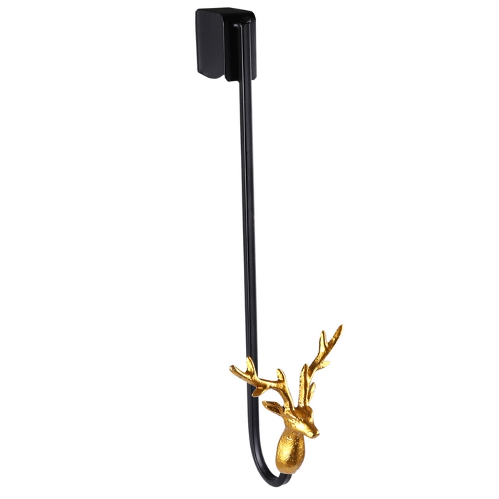 Christmas wreath holder, GLOBAL CHRISTMAS, 40x15cm, Black/Golden, Metal, Deer