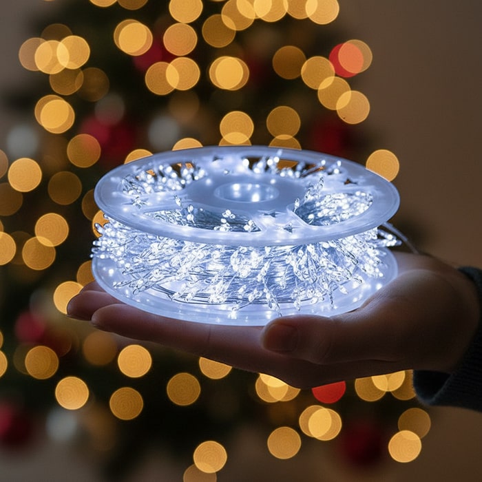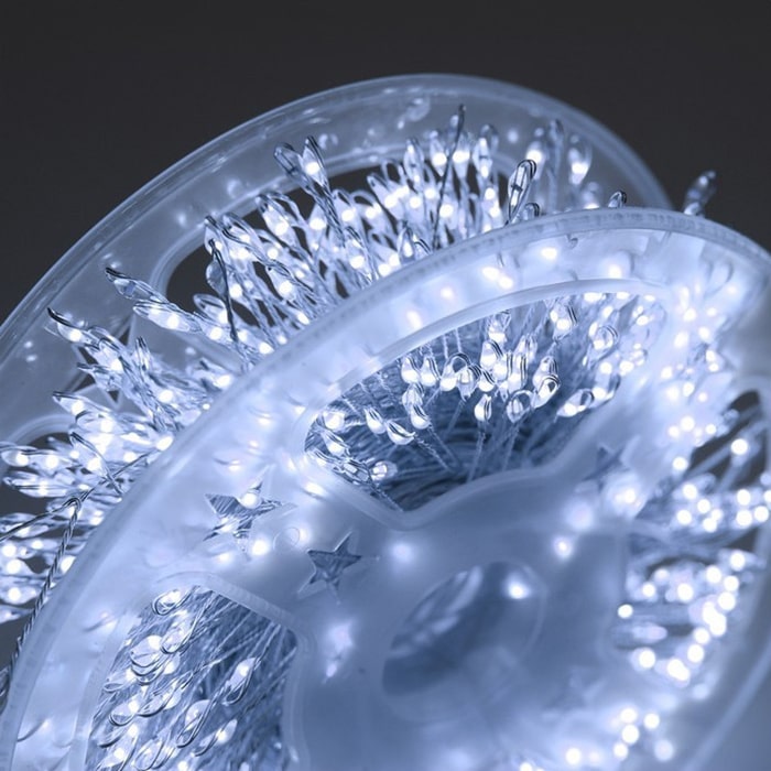 Light curtain with batteries, GLOBAL CHRISTMAS, 900 bulbs LED, 30 m, White, 220 V, 8 Light modes, Green