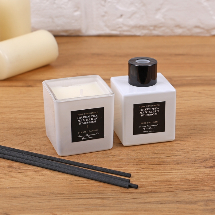 Set of reed diffuser and candle, GS, 50 ml, Green Tea, with sticks