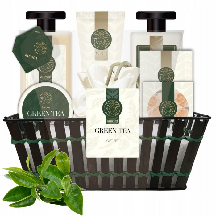 Gift set, AURORA, For Women, 8 pieces, Green, Green, RATTAN BASKET