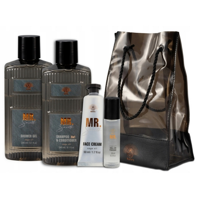 Gift set, AURORA, For Men, 4 pcs, Gray, Oil Therapy, PVC bag