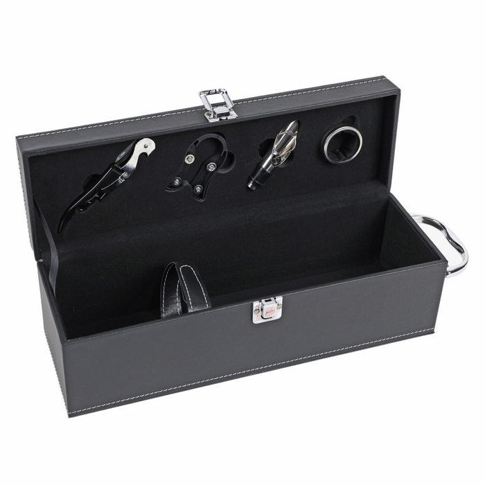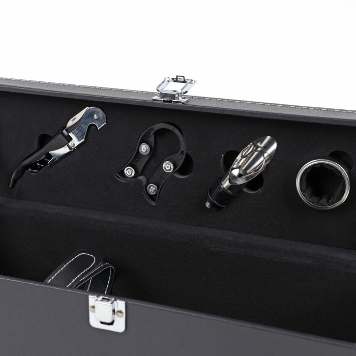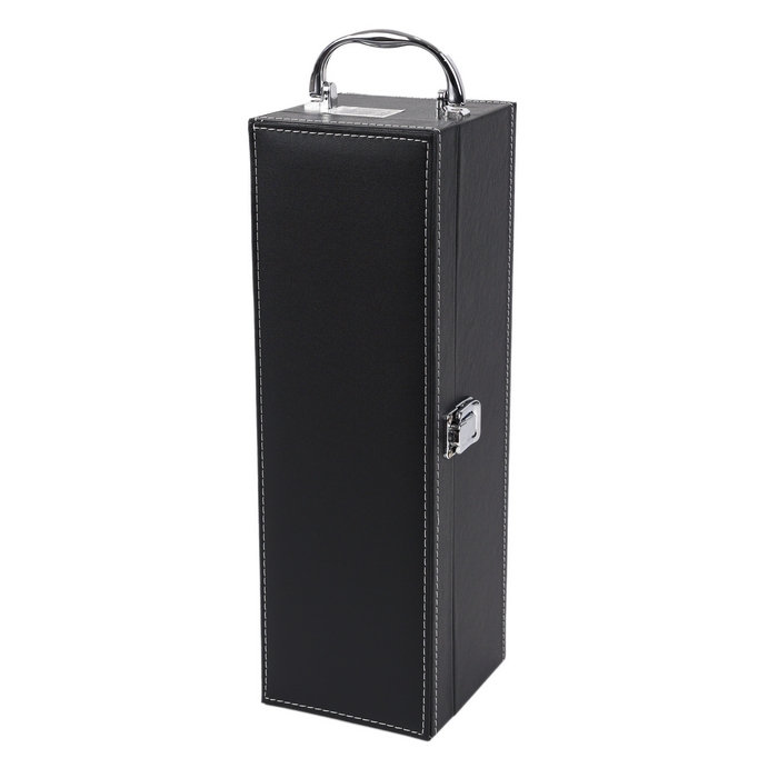 Gift box for bottle, GS, Synthetic leather, wine accesories, Black, 29 cm, 11 cm, 13cm
