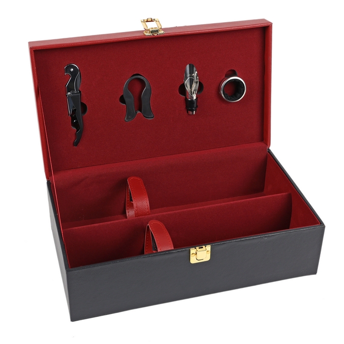 Wine bottle, GS, Synthetic leather, Black/Red, wine accesories