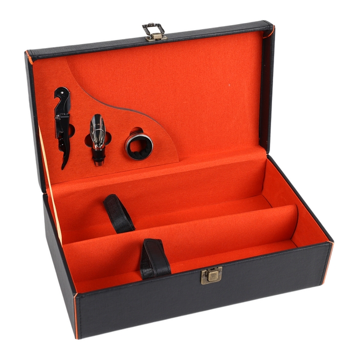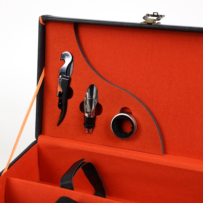 Wine bottle box, GS, Synthetic leather, Black/Red, wine accesories, 34.5 cm, 20cm, 11.5 cm