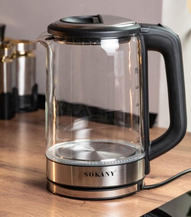 Electric kettle, SOKANY, Glass/Plastic, 1500 W, 220-240V, 2.2L