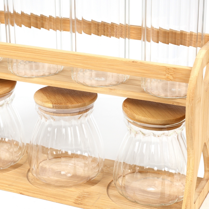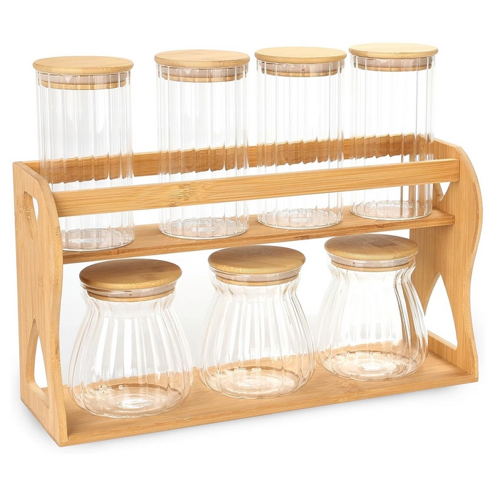 Condiment container set, GS, Glass/Bamboo, 8 pieces