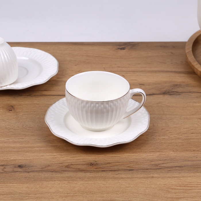 Tea set, GS, Ceramics, 220ml, White/Golden, 12 pieces