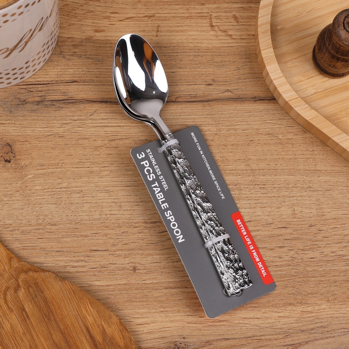 Spoon set, GS, 3 pieces, Stainless steel 201, 65 g, Stone