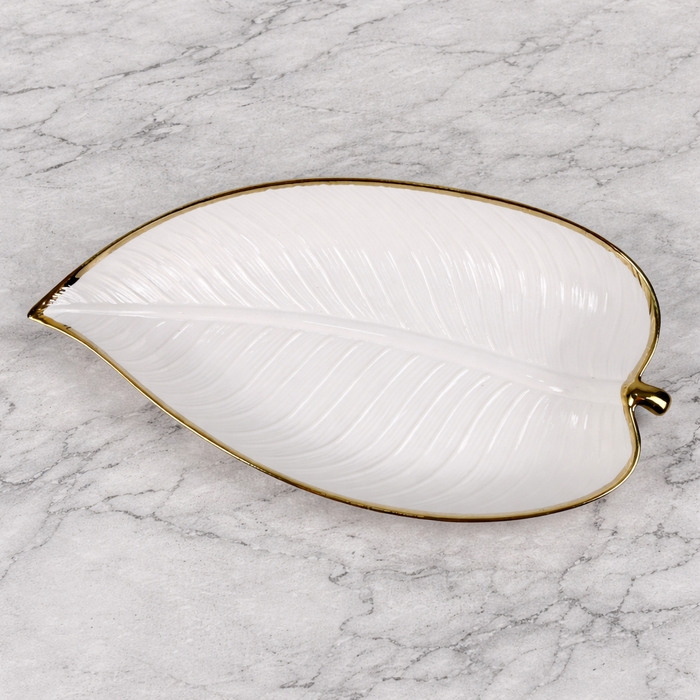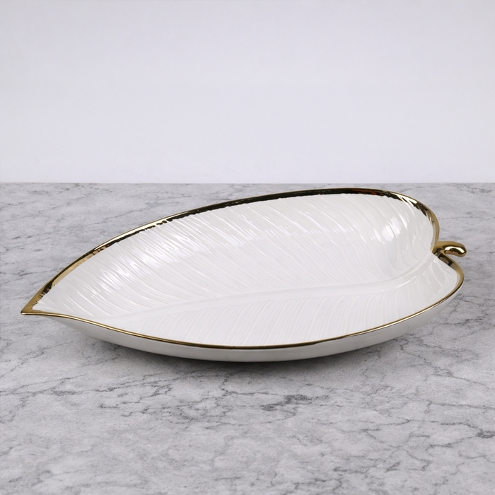 Plates set, GS, Ceramics, 35x19x4 cm, White/Golden, Leaf