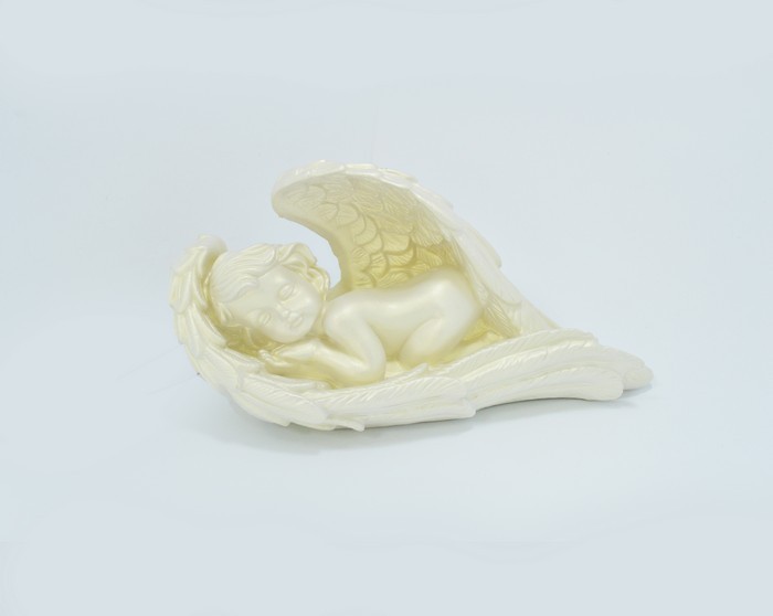 Suvenir inger care doarme in aripa, ORIENS, Perla, 17cm, 30cm, Gips, Alb