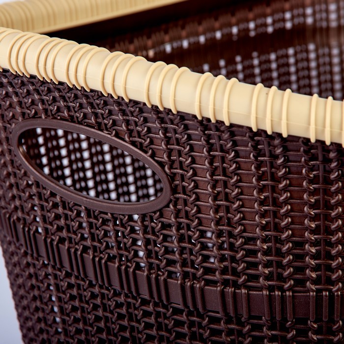 Coşul de plastic, cu decor împletit este o alternativă ideală la cutiile obişnuite sau la coşurile de răchiță. Perfect pentru transportul hainelor. Se poate folosi ca şi coş pentru jucăriile copiilor sau pentru diferite lucruri mici. Мaterial : Plastic Culoare : Culori in asortiment Volum : 35L Dimensiuni : 40x52x24cm Forma : Ovala Tip de orientare : Orizontal