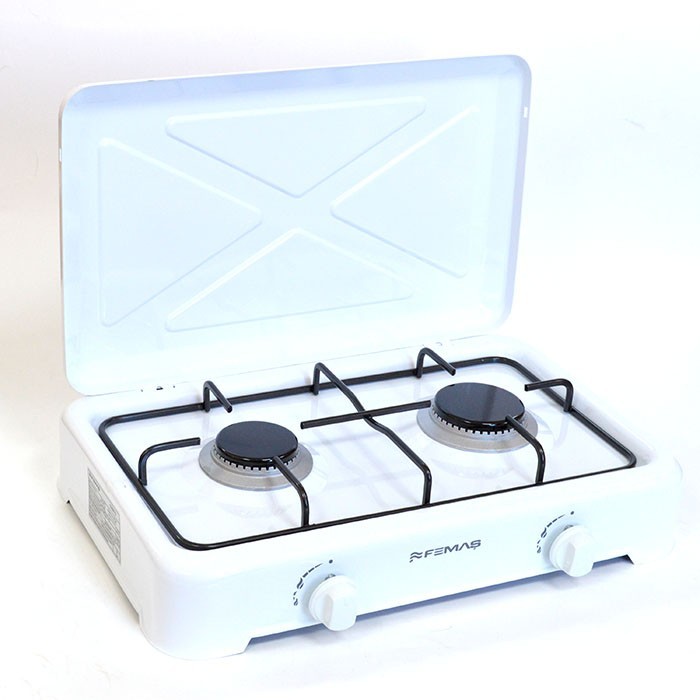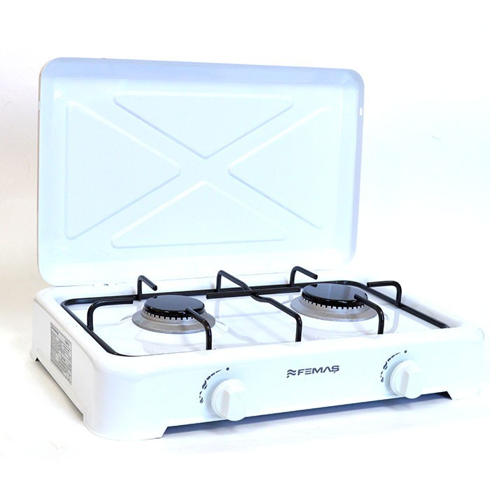 Aragaz plita FEMAS, 2 ochiuri, cu capac din tabla emailata, alimentare cu butelie.