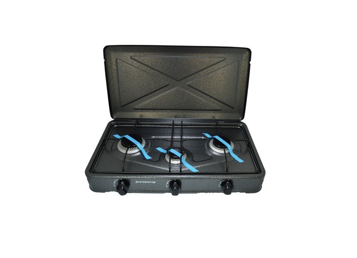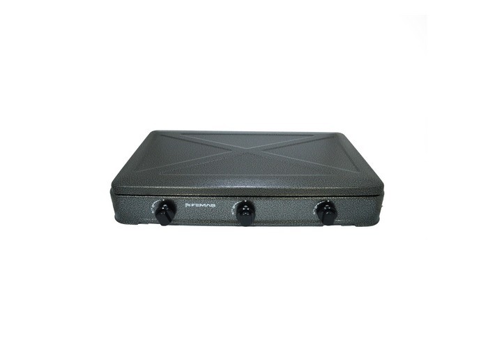Plita gaz, FEMAS, Antracit, 3 compartimente, Cu capac, Otel Emailat