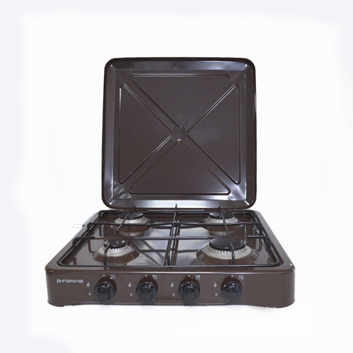Plita gaz, FEMAS, Cafeniu, 4 compartimente, Cu capac, Otel Emailat