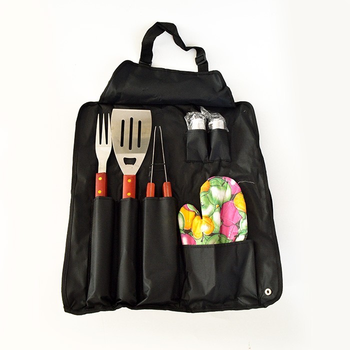 Setul de ustensile pentru grătar, format din 7 piese, include instrumentele de baza pentru orice pasionat de gătit la grătar. Ustensilele din inox sunt durabile și se potrivesc ideal pentru utilizarea frecventă. <br /> <br /> <strong>Specificații:</strong><br /> <br /> <table class="spec" cellpadding="0" cellspacing="0" style="border:1px solid #f0f0f0;"> <tr><td class="table-title">Tip produs:</td> <td class="table-title-value">Set</td></tr> <tr><td class="table-title">Număr piese:</td> <td class="table-title-value">7</td></tr> <tr><td class="table-title">Material:</td> <td class="table-title-value">Metal, Lemn</td></tr> <tr><td class="table-title">Conținut set:</td> <td class="table-title-value"> 1 x Furculiță <br /> 1 x Paletă <br /> 1 x Clește <br /> 1 x Mănușă de protecție <br /> 1 x Recipient pentru sare<br /> 1 x Recipient pentru piper <br /> 1x Geantă </td></tr></table>
