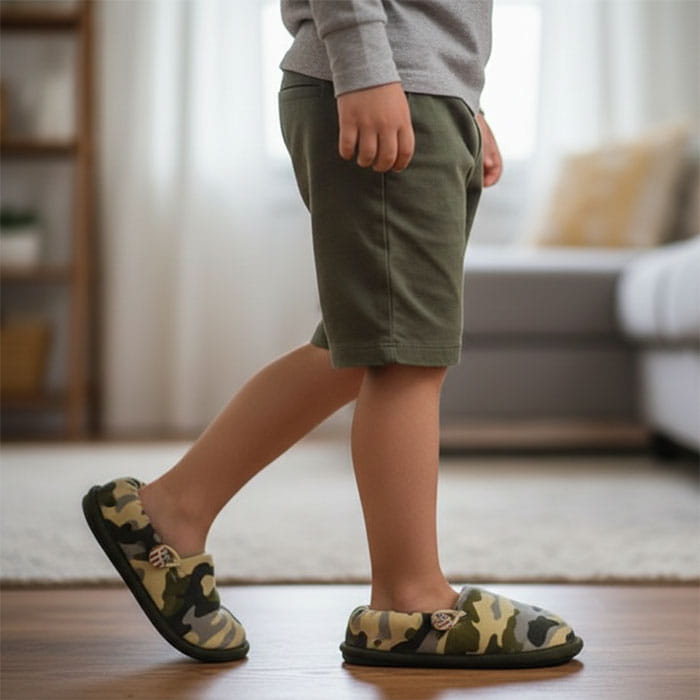 Ciupici de camera copii, GS, 24-30, Camuflaj, Textil, Cauciucata, Papuci de casa, Pentru Copii