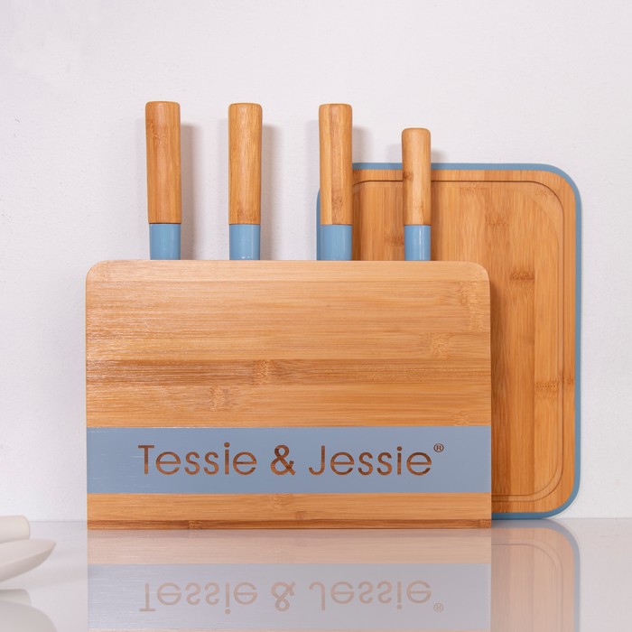 Tocator lemn cu cutite de bucatarie, Tessie&Jessie, Lemn, 31x23x1.2cm, 4buc
