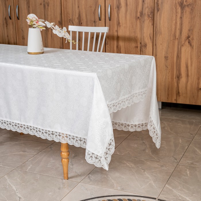 Fata de masa, ATAK, Cemere, 160x300 cm, 12 persoane, Poliester, Alb