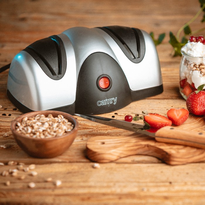 Ascuțitor cuțite cu doua nivele de ascuțire, un nivel pentru redarea ascuțirii lamei cuțitului si un nivel pentru finisare. Ascuțitorul este prevazut cu ventuza de fixare, astfel este mai usor de manevrat.