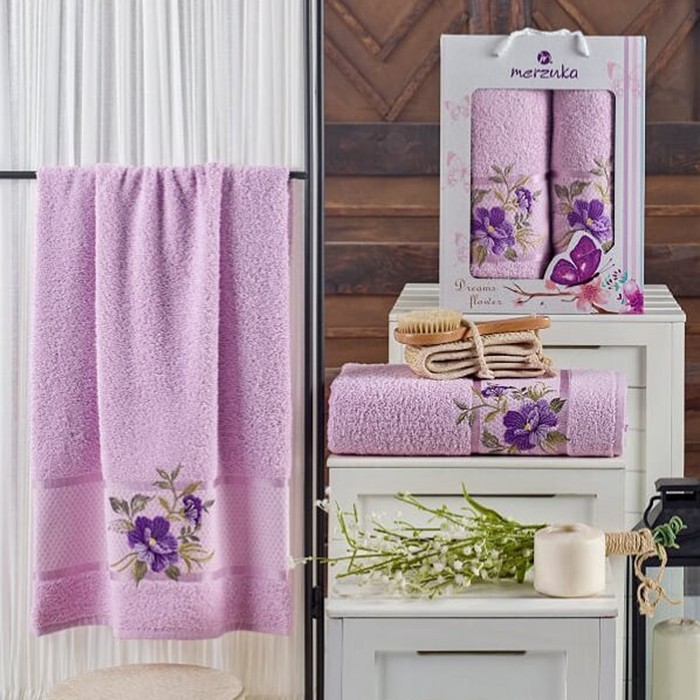 Set prosoape, MERZUKA, 3 buc, Dreams Flower, Bumbac, 50x90 cm, 70x140 cm, Culori in asortiment