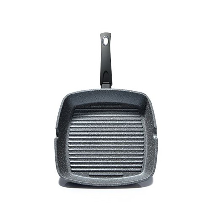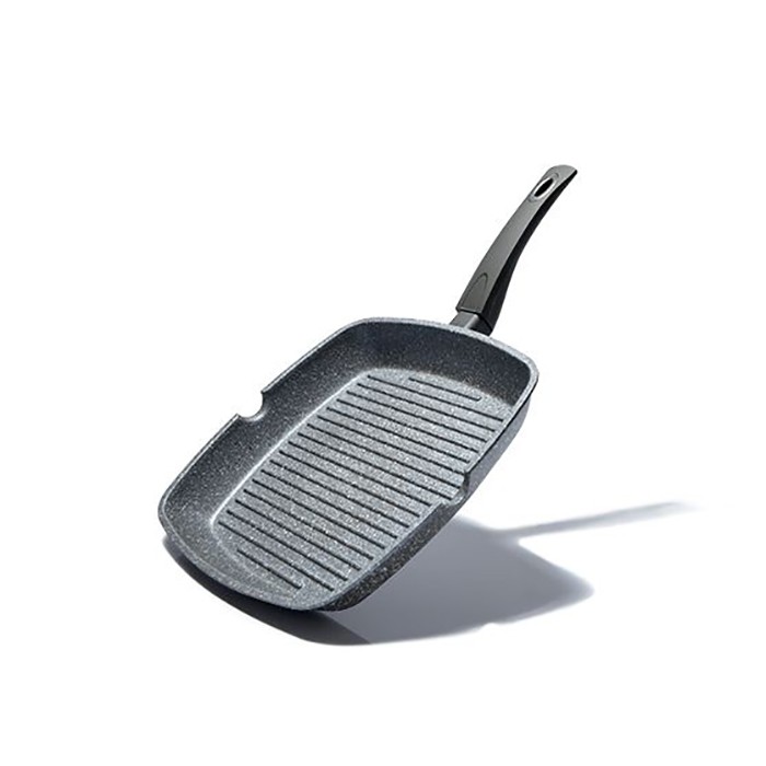 Seria GRAY STONE este una dintre cele mai bune colecții FISSMAN - produse inovatoare realizate din materiale naturale, ecologice. Aluminiul se încălzește rapid și distribuie căldura uniform. Învelișul multistrat platinic, cu rezistență mare, este responsabil de siguranță. Anume FISSMAN a început să-l folosească pentru producerea tigăilor, bazându-se pe materii prime naturale, sigure. Fundul reliefat-grill vă permite să gătiți cu minimum ulei. Alimentele practic nu intră în contact cu fundul fierbinte, astfel obținem bucate suculente. Mânerul este făcut din bakelit - nu se încălzește, nu alunecă.