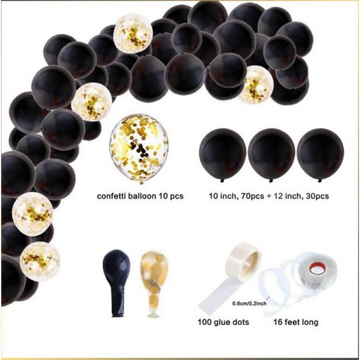 Set aranjamente din baloane negru/aur, GS, 110 piese, Negru/Auriu, Latex