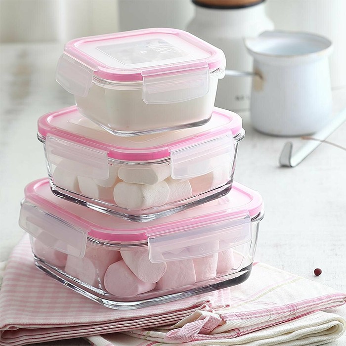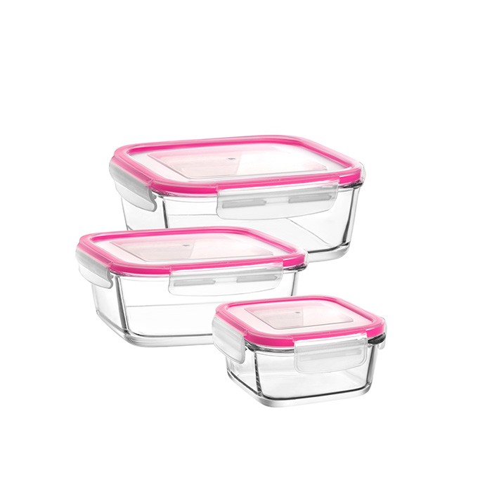 Set container, LAV, 3 piese, Sticla, Cu capac, 1.15L, 720ml, 375ml, Dreptunghi