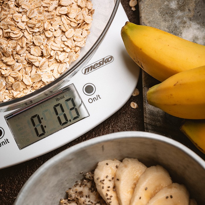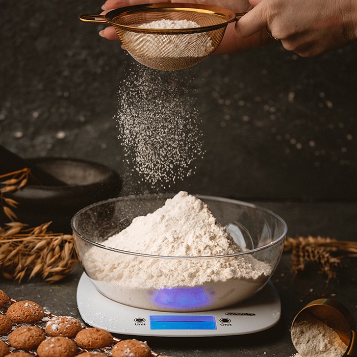 Cantar cu bol, MESKO, Bucatarie, 5kg, Plastic, 2 Baterii R03 (AAA), Alb, Electric