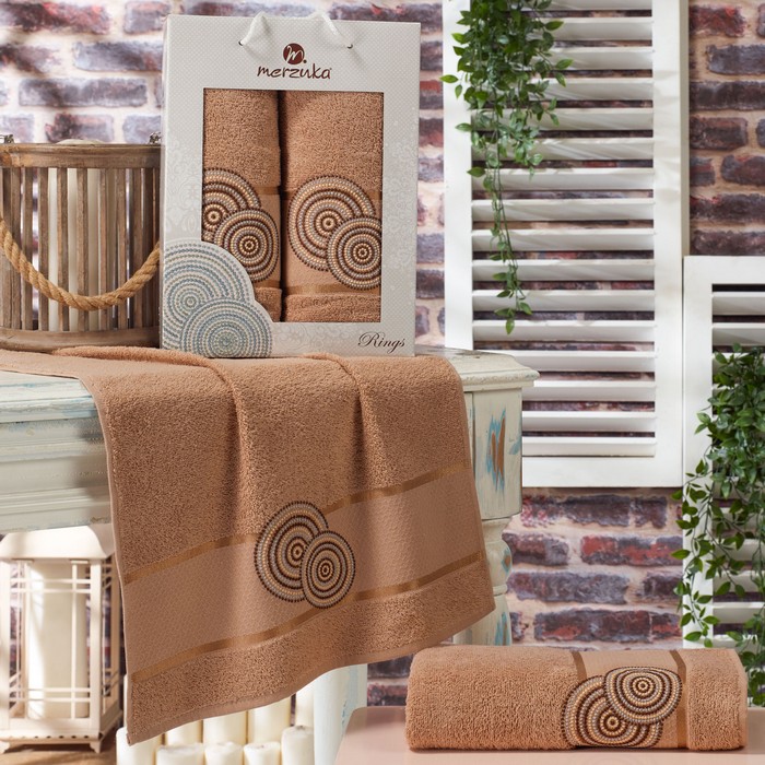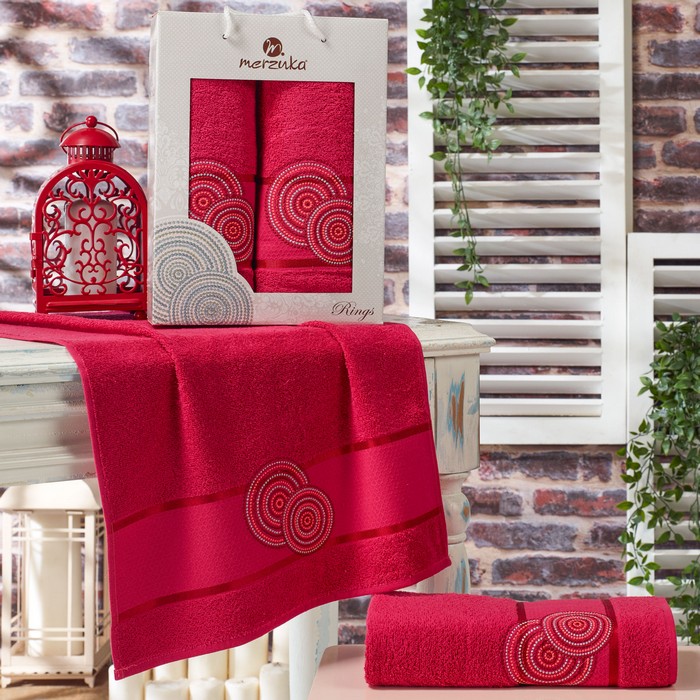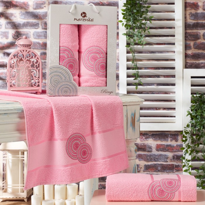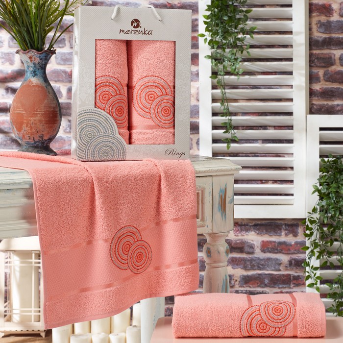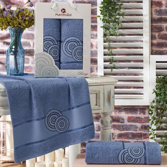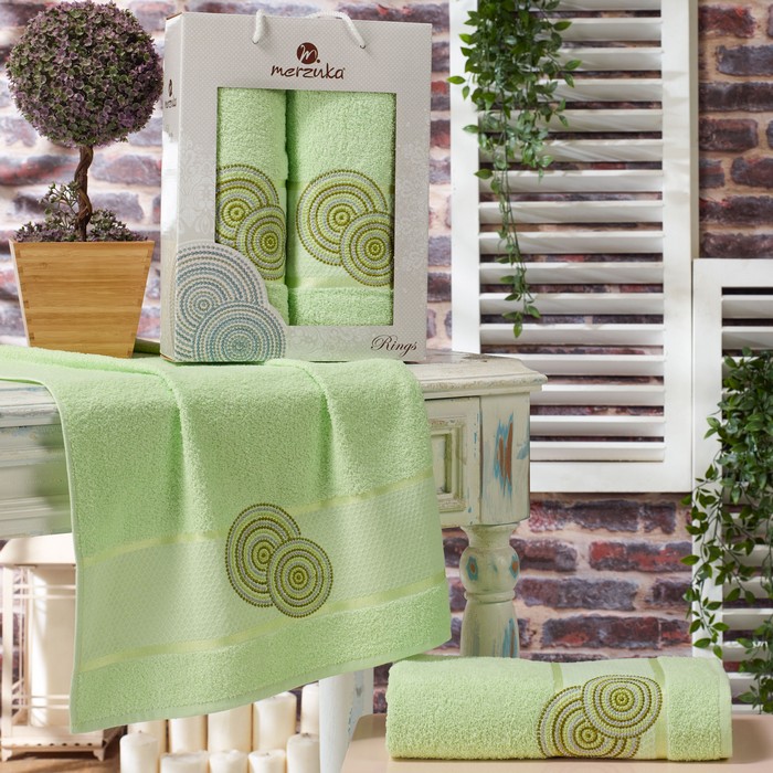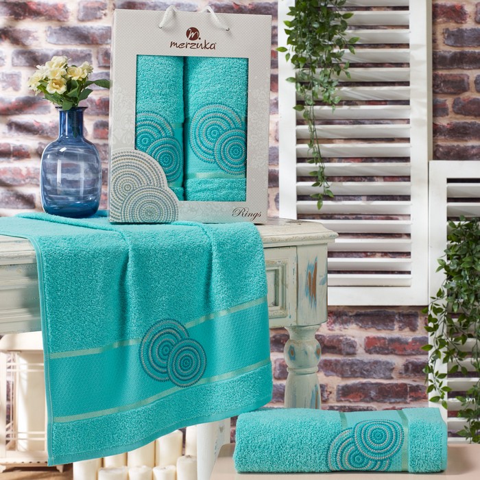 Set prosoape, MERZUKA, 2 piese, 50x90 cm, 70x140 cm, Rings, Bumbac, Diverse Culori