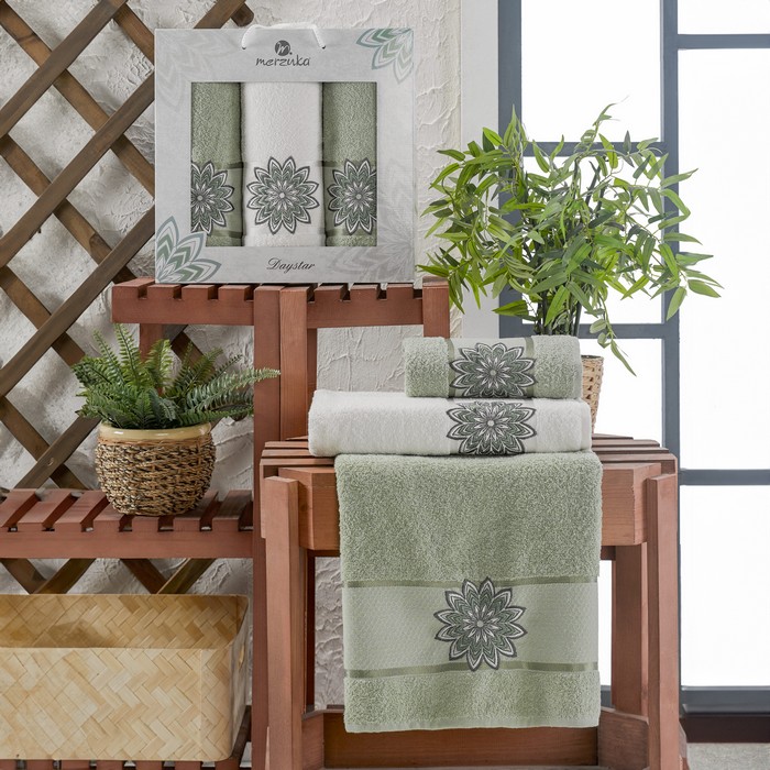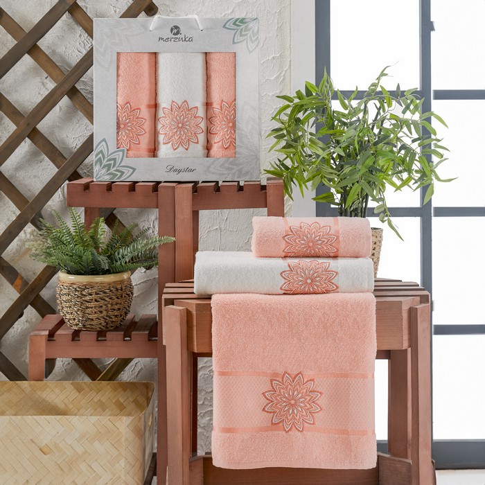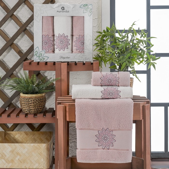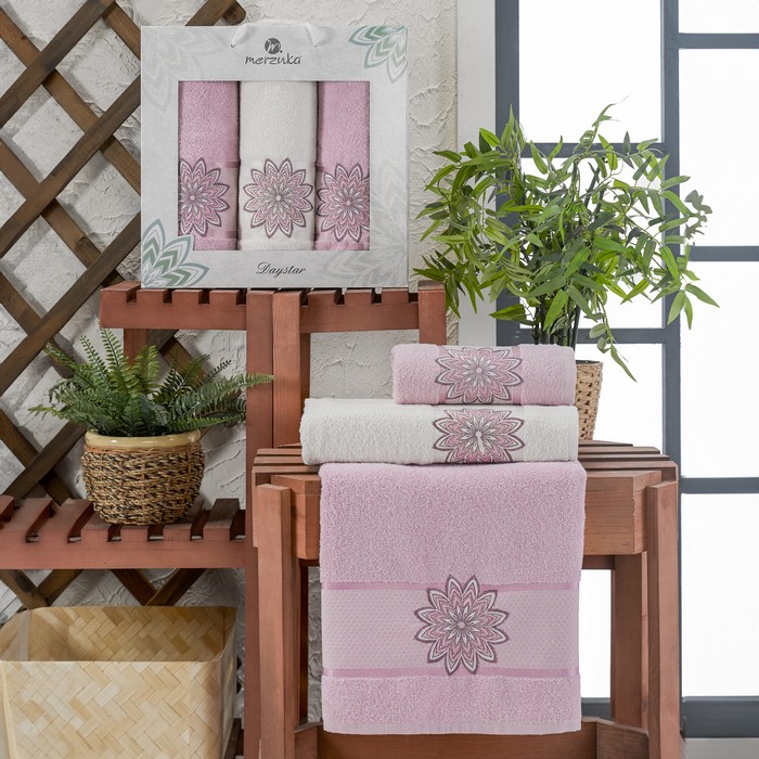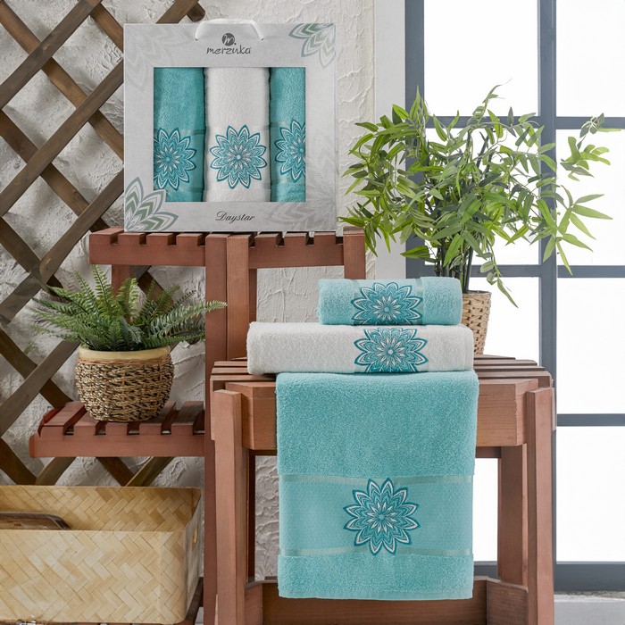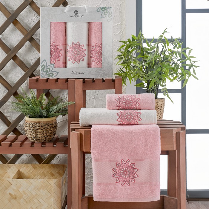 Set prosoape, MERZUKA, 3 piese, 50x90 cm, 70x140 cm, Daystar, Bumbac, Diverse Culori