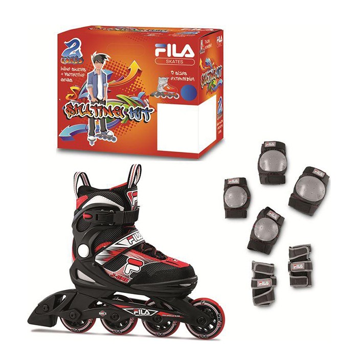 Set role cu protectie, FILA, J-ONE COMBO 2, 29-32, Negru/Rosu