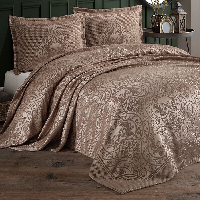 Set cuvertura cu fete de perna, BIRHOME, Valeron, 240x260cm, 60x80cm, Cafea, Poliester