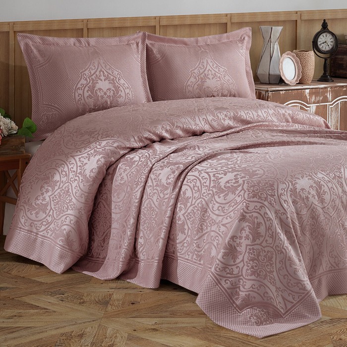 Set cuvertura cu fete de perna, BIRHOME, Valeron, 240x260cm, 60x80cm, Pudra, Poliester