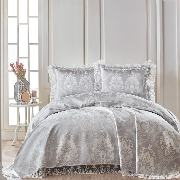 Set cuvertura cu fete de perna, BIRHOME, Begonya, 240x260cm, 60x80cm, Gri, Poliester