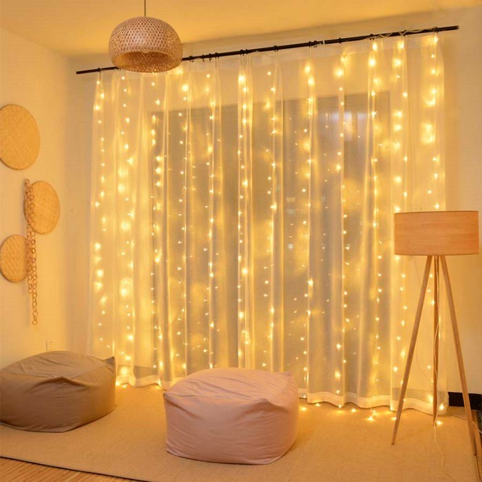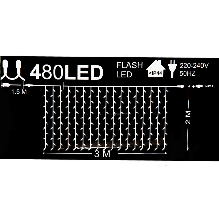 Ghirlanda perdea, DECOLED, 480 becuri LED, 3x2m, Alb Cald, Verde, Interior/Exterior, IP44, 220 V